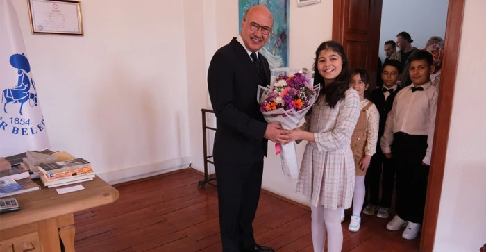 23 Nisan Ulusal Egemenlik ve Çocuk Bayramı, Akşehir’de hem duygusal hem de umut dolu anlara sahne oldu. Kutlamalar kapsamında Belediye Başkanı A. Nuri Köksal, başkanlık koltuğunu kendisiyle aynı okul sıralarından geçen 11 yaşındaki Tarık Buğra İlkokulu öğrencisi Duru Ceylan’a devretti. Törende, temsili başkan Duru Ceylan’a okul idarecileri, öğretmenleri ve öğrenci arkadaşlarından oluşan bir heyet de eşlik etti.