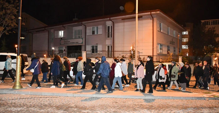 Katılımcılar yürüyüş boyunca “Kadına karşı şiddete hayır”, “Kadına kalkan eller kırılsın” gibi sloganlar atarak farkındalık oluşturdu.
