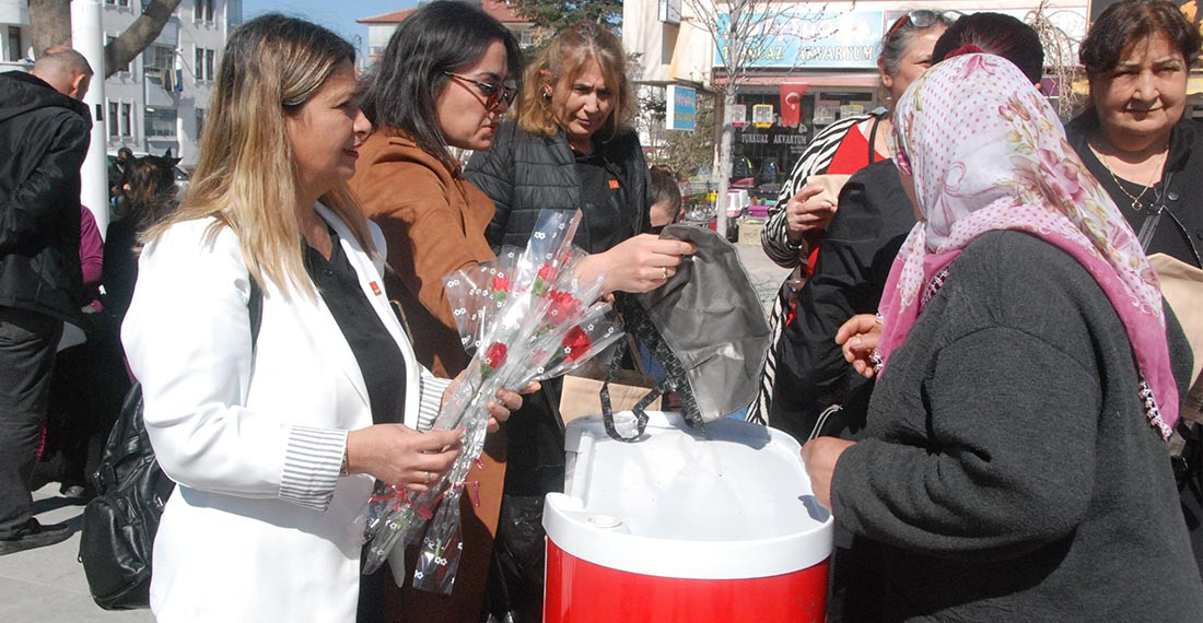Akşehir CHP Kadınlara Çiçek Dağıttı