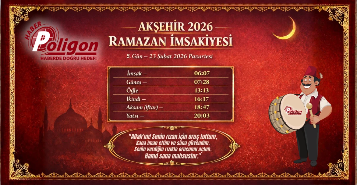 Akşehir İçin 23 Şubat 2026 Pazartesi İmsakiyesi...