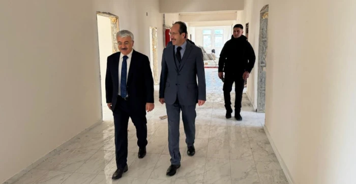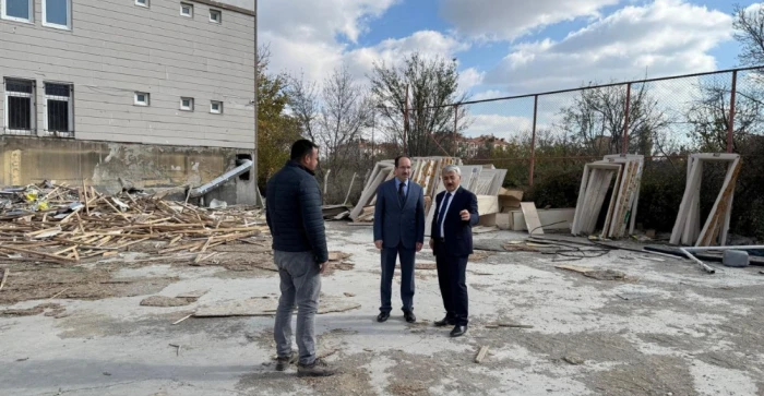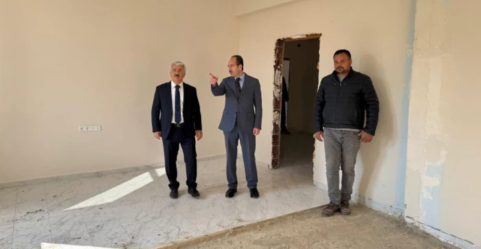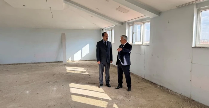 Çalışmaları yerinde inceleyen Kaymakam Yiğit, emeği geçenlere teşekkür ederek binanın kısa süre içerisinde tamamlanarak hizmete açılmasını temenni etti.