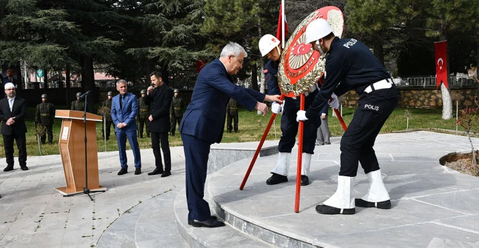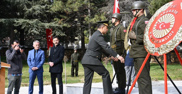 Akşehir Şehitliğinde; Akşehir Kaymakamı Mustafa Yiğit, Garnizon Komutanı Albay Hüseyin Şen ve Akşehir Belediye Başkan Yardımcısı Cevat Nuri Bozoğlu’nun çelenk sunumu ile başlayan tören, askerlerinin saygı ateşi eşliğinde yapılan saygı duruşu ve akabinde okunan İstiklal Marşı ile devam etti.