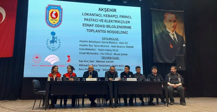 Akşehir’de faaliyet gösteren lokanta, pastane, kebapçı, fırıncı ve elektrikçi esnafına yönelik önemli bir bilgilendirme toplantısı düzenlendi. Akşehir Lokantacılar, Pastacılar, Kebapçılar, Fırıncılar ve Elektrikçiler Esnaf Odası tarafından organize edilen toplantı, Akşehir Kültür Merkezi’nde yoğun katılımla gerçekleştirildi.