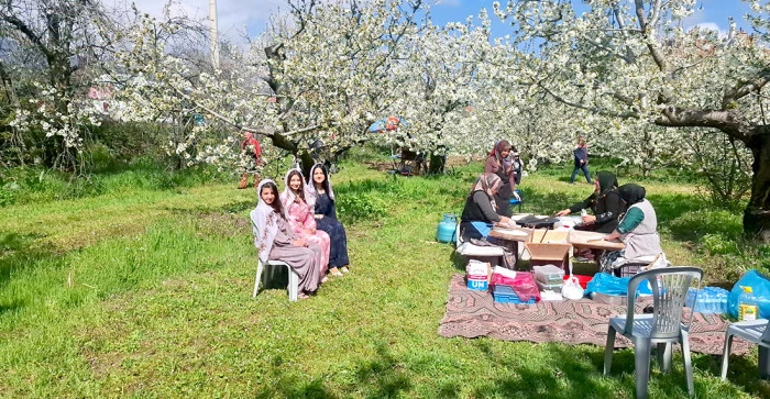 Doğayla iç içe gerçekleşen etkinlikte katılımcılar, beyaza bürünen bahçelerde fotoğraflar çekerek bu eşsiz manzarayı ölümsüzleştirdi.