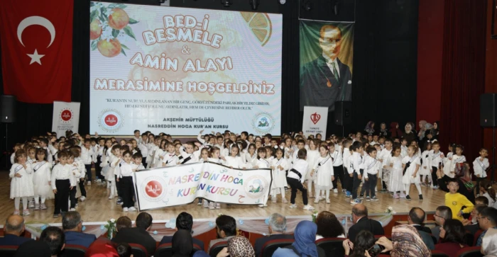 Akşehir İlçe Müftülüğüne bağlı Nasreddin Hoca 4-6 Yaş Kur'an Kursu'nda eğitime başlayan 210 öğrenci için, eğitime Besmele ile başlamayı simgeleyen “Bed-i Besmele” programı düzenlendi.