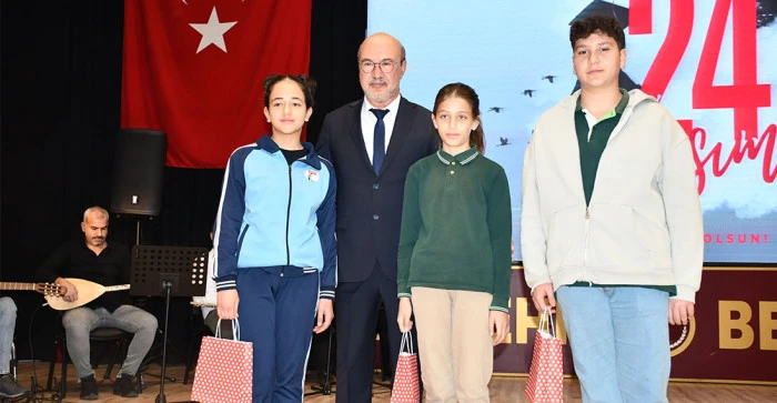 Programda Öğretmenler günü münasebetiyle düzenlenen yarışmalarda derece alan öğrencilere ödülleri protokol tarafından verildi. Emekli olan öğretmenlere plaket ve belge takdiminin ardından emekli öğretmen Zühtü Şahin’de bir konuşma yaptı. Şahin “Eğitime ve eğitimciye önem veren 3 erkek kardeşinde öğretmen olduğu bir ailenin bireyi olmanın ayrı bir hazzını yaşamaktayım. Öyle ki, eğitime verdiğimiz önemi, şükürlere olsun 3 kızım, bir damadım ve bir gelinimin de öğretmen olarak bu kutsal mesleğin fedakar birer bireyi olmalarıyla da pekiştirmenin tarif edilmez mutluluğunu tattım elhamdülillah” diye konuştu.