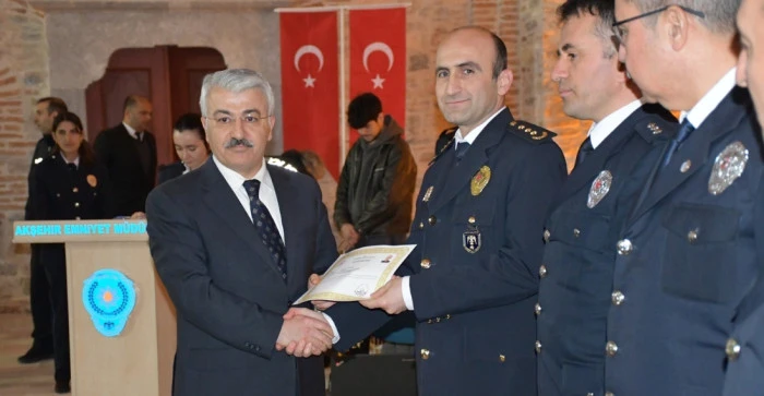 Programda emniyet teşkilatında görev yapan bazı personellere de başarı belgeleri verildi. Belgeler, Akşehir Kaymakamı Mustafa Yiğit tarafından İlçe Emniyet Müdürü Beytullah Ekerbiçer’in yanı sıra Başkomiser Erdinç Enişte, Komiser Metin Aksoy, Komiser Nihat Harmankaya, Komiser Gültekin Şekerci ve Kıdemli Başpolis Özcan Göksu’ya takdim edildi.