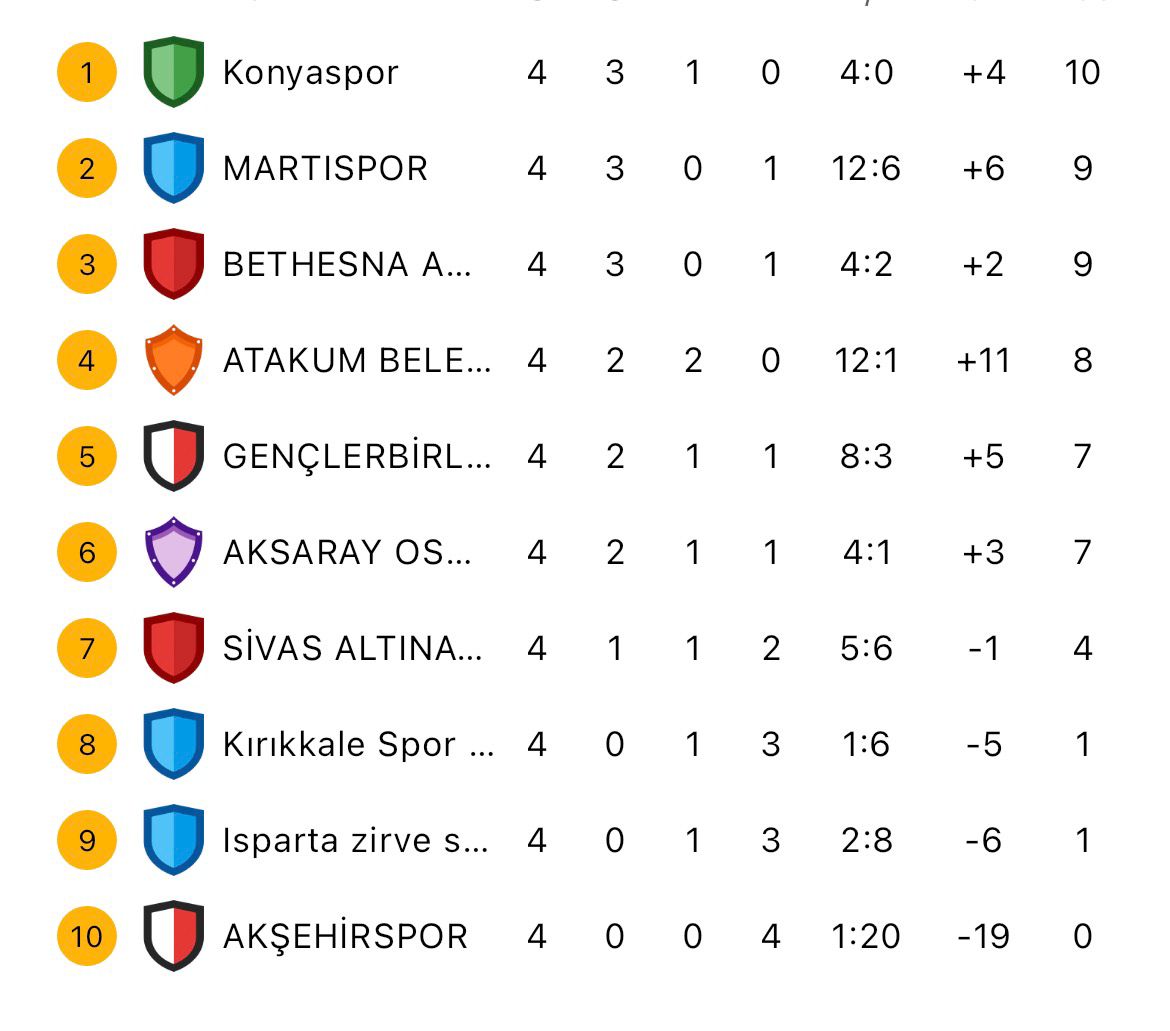 Turnuvanın ilk günü yapılan maçlarda ki puan durumu sıralaması ise şu şekilde: