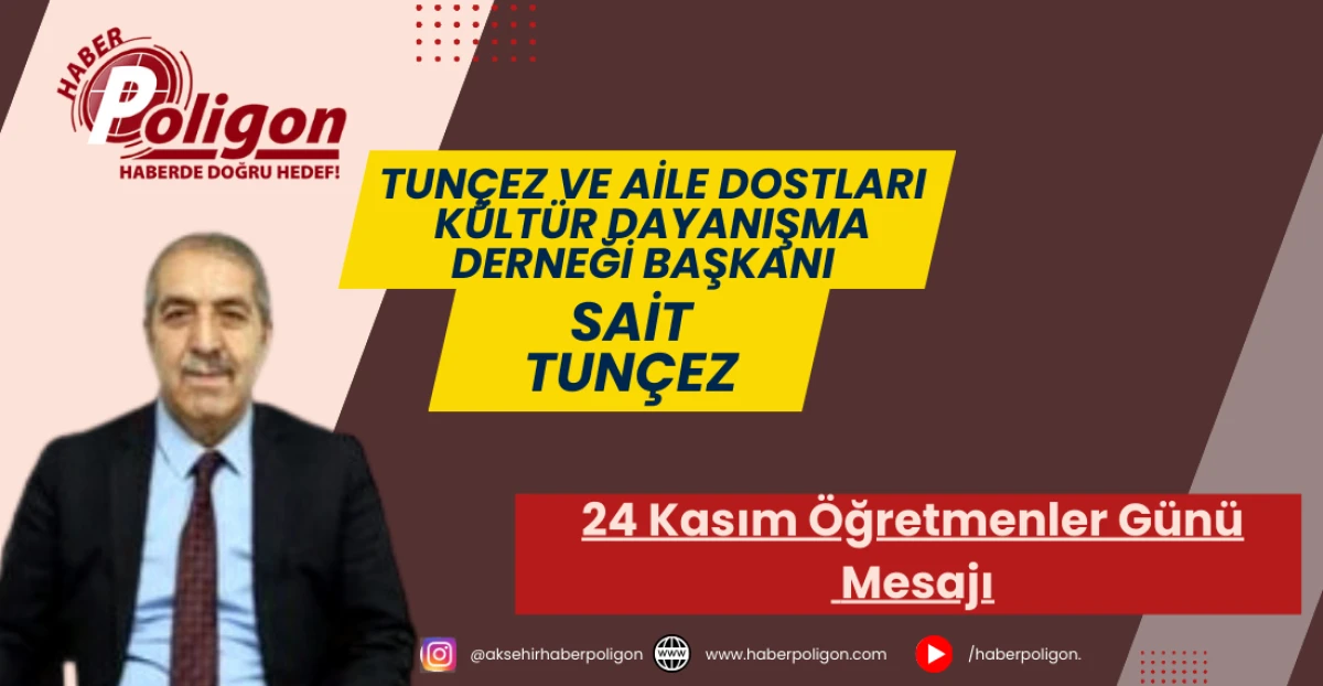 Tunçez ve Aile Dostları Kültür Dayanışma Derneği Başkanı Sait Tunçez, 24 Kasım Öğretmenler Günü dolayısıyla bir mesaj yayımladı.