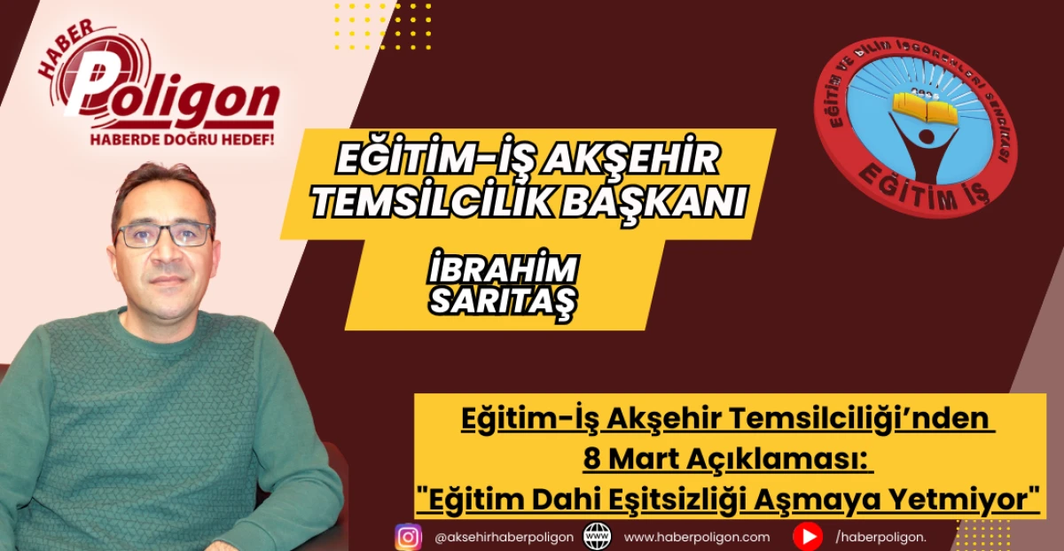 Eğitim-İş Akşehir Temsilcilik Başkanı İbrahim Sarıtaş, 8 Mart Dünya Emekçi Kadınlar Günü vesilesiyle yaptığı açıklamada, Türkiye’de kadınların maruz kaldığı ekonomik ve sosyal eşitsizliklere dikkat çekerek çözüm önerilerini sıraladı.