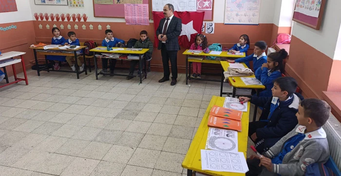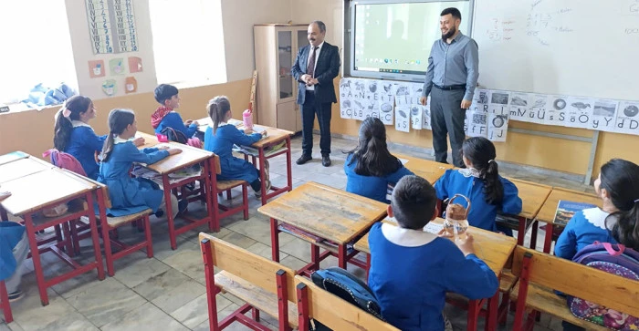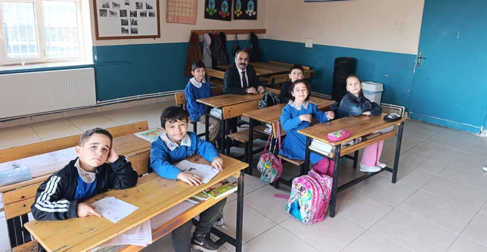 Ziyaret kapsamında birleştirilmiş sınıflarda eğitim gören öğrencilerle yakından ilgilenen İlçe Milli Eğitim Müdürü Mahmut İşcan, sınıf içi etkinlikleri gözlemledi ve öğretmenlerle eğitim sürecine dair değerlendirmelerde bulundu.