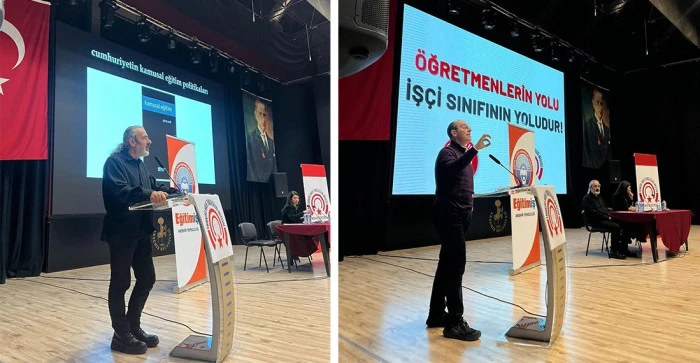 Eğitim-İş Bilim Kurulu Üyesi Prof. Dr. Ayhan Ural, kamusal eğitimin taşıması gereken evrensel ve cumhuriyetçi niteliklerin altını çizdi. Ural, kamusal eğitimin temel ilkelerini net bir şekilde özetleyerek; "Eğitim; sürekli, eşit, parasız, laik, bilimsel ve zorunlu olmalıdır" dedi ve Cumhuriyetin eğitim politikalarının tavizsiz bir şekilde bu sütunlar üzerinde yükselmesi gerektiğini ifade etti.