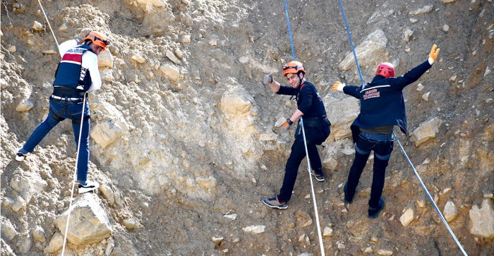 Zorlu arazi şartlarında gerçekleştirilen tatbikatta, ekipler yüksekten yaralı tahliyesi, ipli erişim teknikleri ve güvenli iniş uygulamaları üzerinde yoğunlaştı. Senaryo gereği aşağıda bulunan yaralının güvenli şekilde yukarı taşınması başarıyla uygulanırken, ekipler arası koordinasyon ve hızlı müdahale kabiliyeti de test edildi.