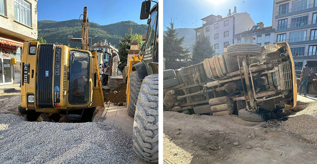Akşehir Belediyesi ana hizmet binası önünde meydana gelen drenaj çalışması sırasında yaşanan olayda 42 D 5753 plakalı damperli kamyon yolun göçmesi üzerine çukura düşerek yan yattı. Olayda kimse yaralanmazken, kamyonda hasar oluştu.